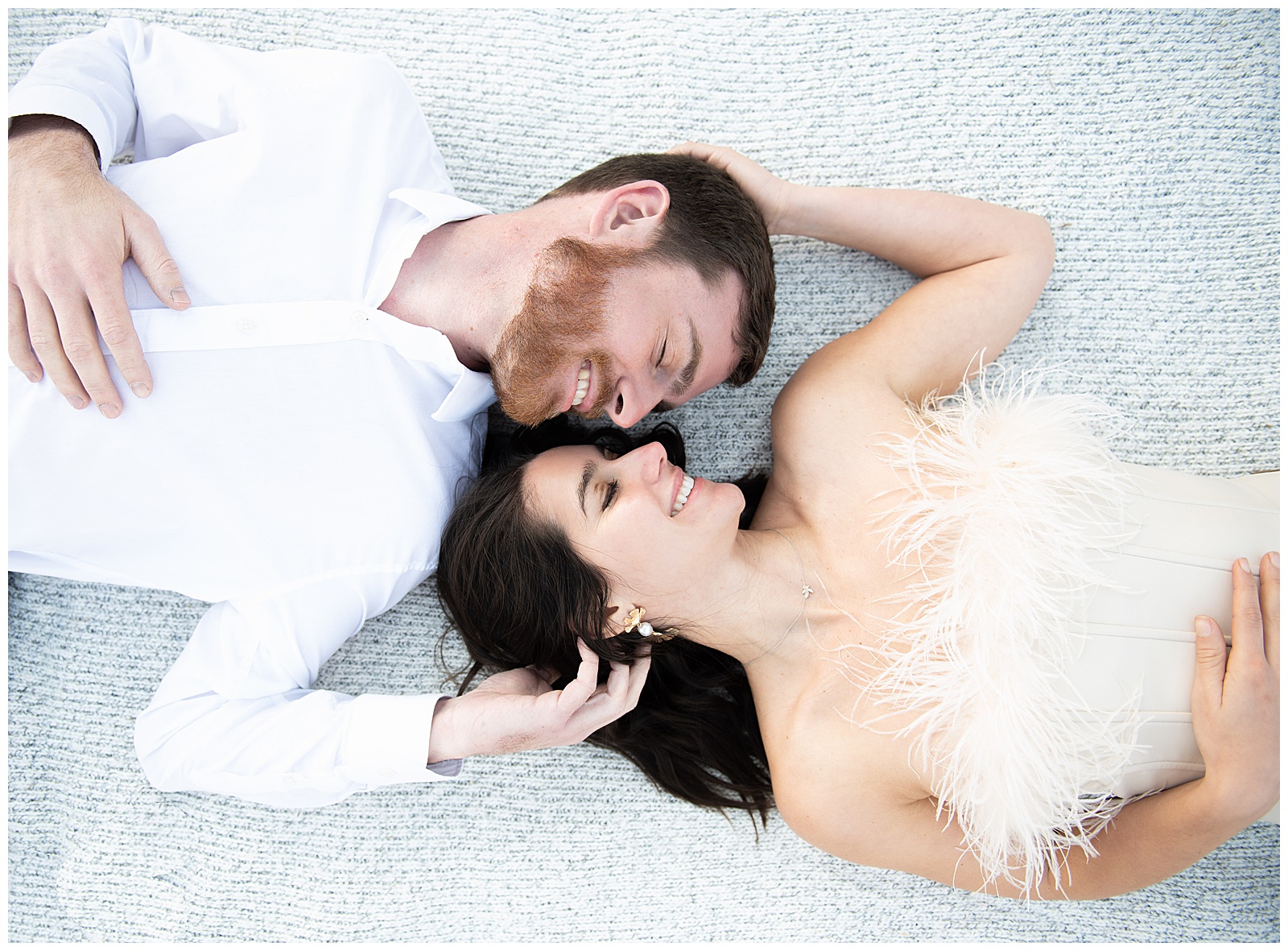 The day of the session, my excitement reached new heights the moment they arrived. Stephanie emerged from the car in an absolutely stunning white leather and feather dress that took my breath away. Adam brought along his prized car to incorporate into some of their portraits, adding a personal touch that made the session uniquely theirs.