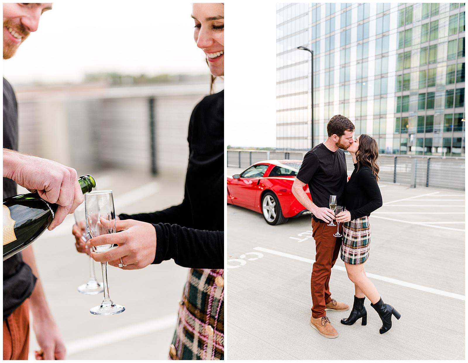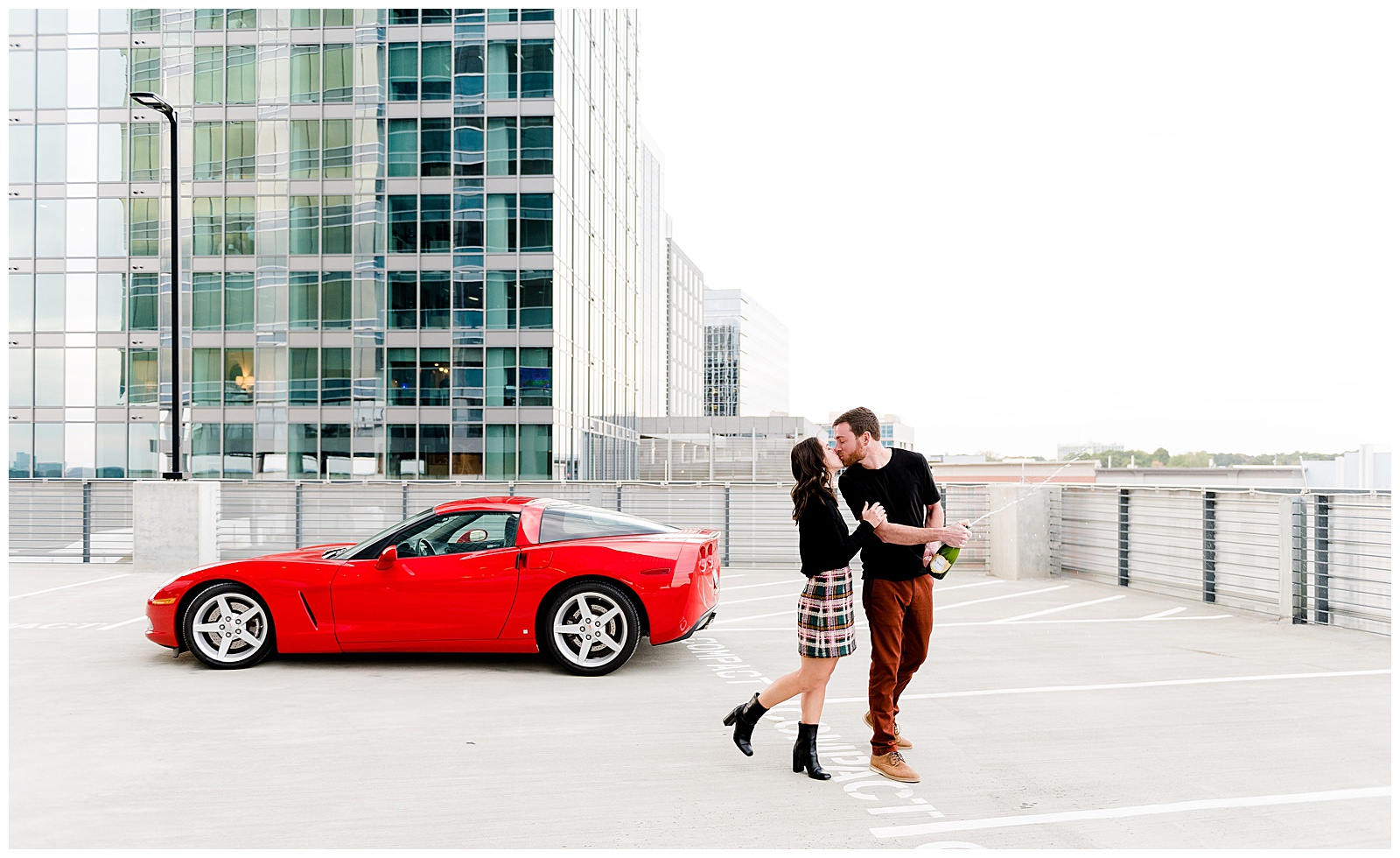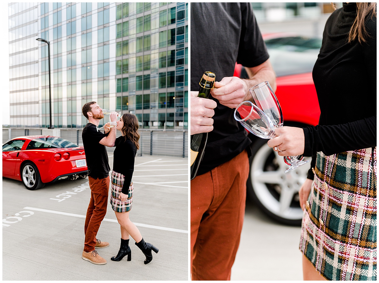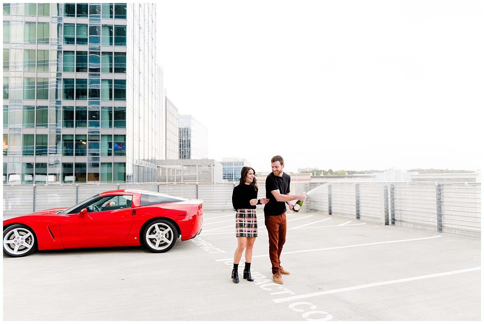 After a quick wardrobe change, we headed to a high-rise parking deck for those coveted car shots. This was my first session featuring a client’s vehicle, and I couldn’t have been more excited. While we thought the ground level was chilly, the exposed parking deck brought temperatures to a whole new level. But as we all agreed, the dramatic backdrop was absolutely worth braving the cold.